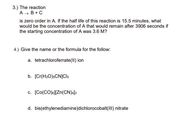 Solved Please Derive The Integrated Rate Law For The Nth Order N 2 Order Reactions As Well As The Half Life For An Order Greater Than 2 A P Keep The Derived Formula In Terms